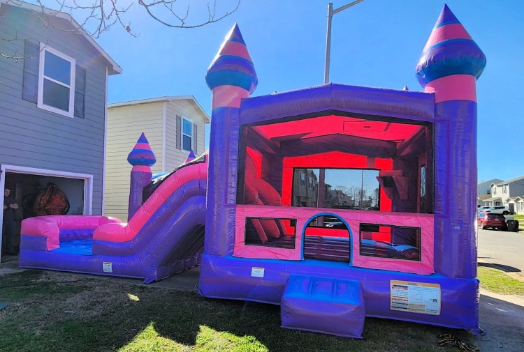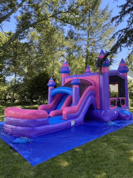 If you’re searching for a princess bounce house with slide rental in Farmingdale, NY or a purple and pink bounce house combo in Nassau County, this inflatable is the perfect fit.