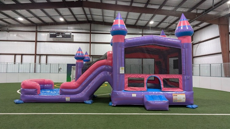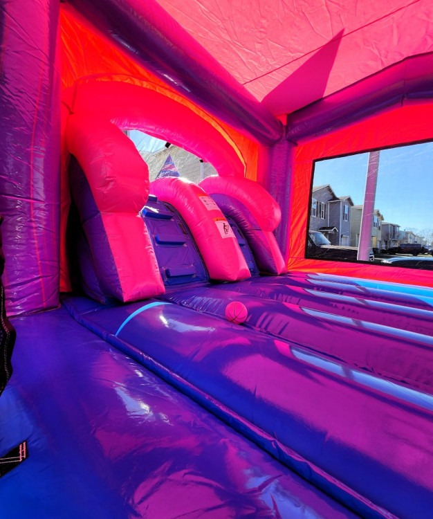Create a magical experience with our Royal Princess Bounce & Slide Combo inflatable rental in Farmingdale, NY, one of the most popular choices for princess-themed parties in Nassau County. This beautiful purple and pink combo unit features a spacious bounce area and an attached slide, delivering double the fun in one inflatable.